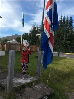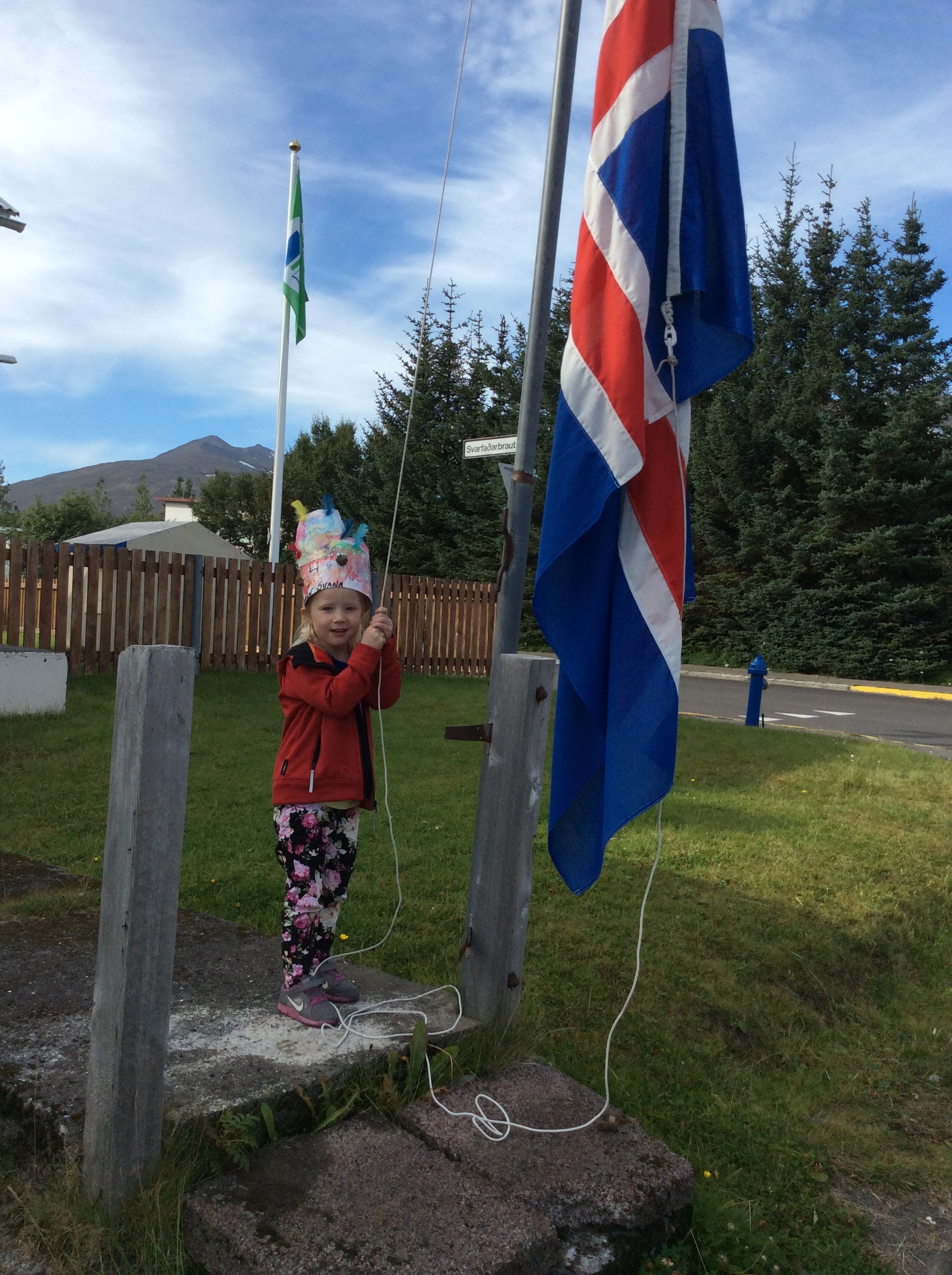 Kolbrún Svana málaði á kórónuna sína og við flögguðum íslenska fánanum henni til heiðurs.