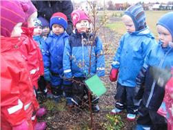 Við munum aðstoða hvort annað við að hlúa að trénu og fylgjast með vexti þess. Við hvetjum alla til að líta við og athuga hvort þeir finna tréð þegar gengið er framhjá (myndin er vísbending um staðsetninguna).