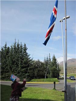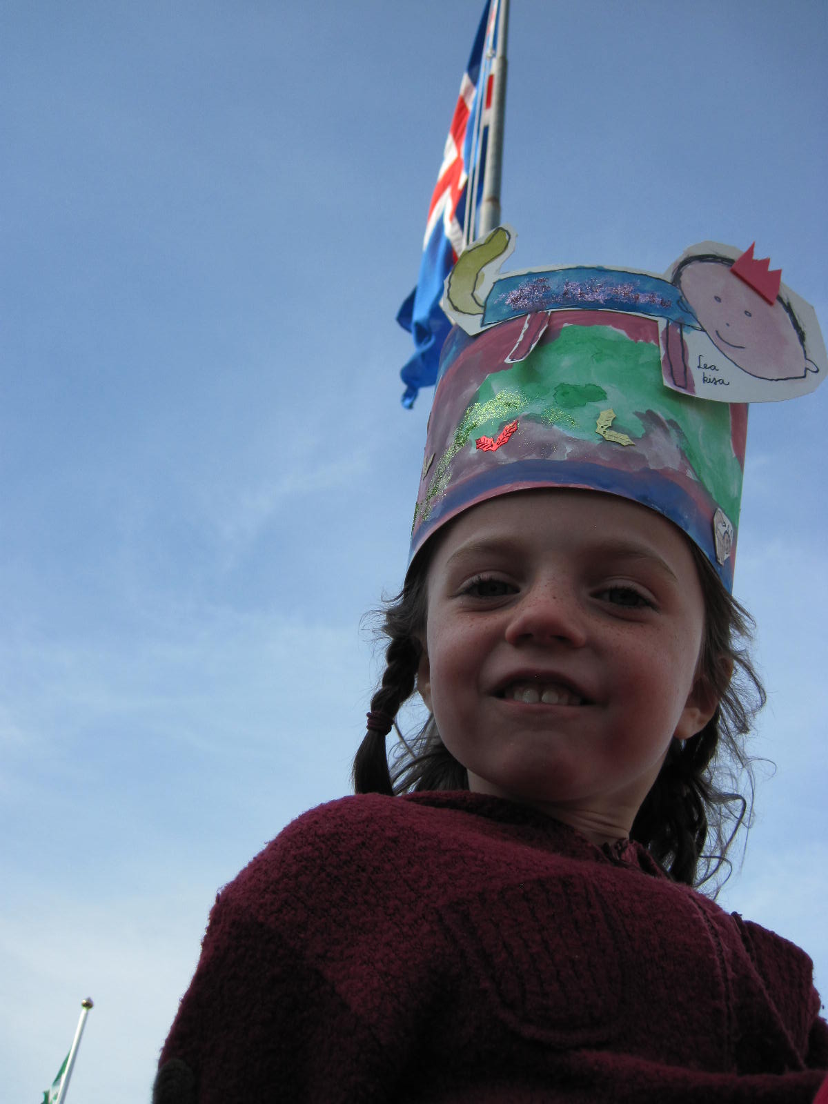 Lea málaði á kórónuna sína og við flögguðum íslenska fánanum henni til heiðurs.