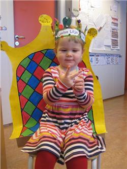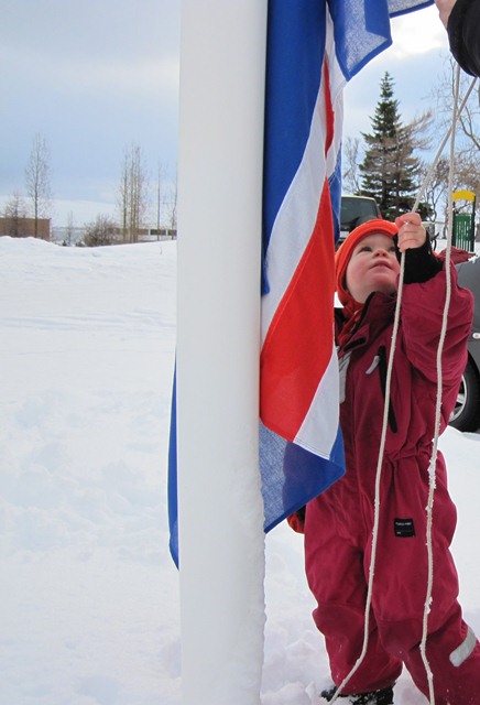 Lovísa Lilja málaði á kórónuna sína og við flögguðum íslenska fánanum henni til heiðurs.