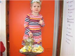 Eftir sönginn bauð hún öllum á Hólakoti upp á ávexti úr ávaxtakörfunni.