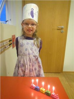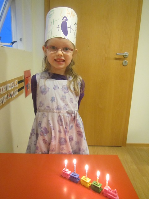 Hún bjó sér til þessa fallegur kórónu, blés á kertin 5 og