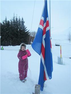 Einnig fór hún út og flaggaði íslenska fánanum í tilefni dagsins