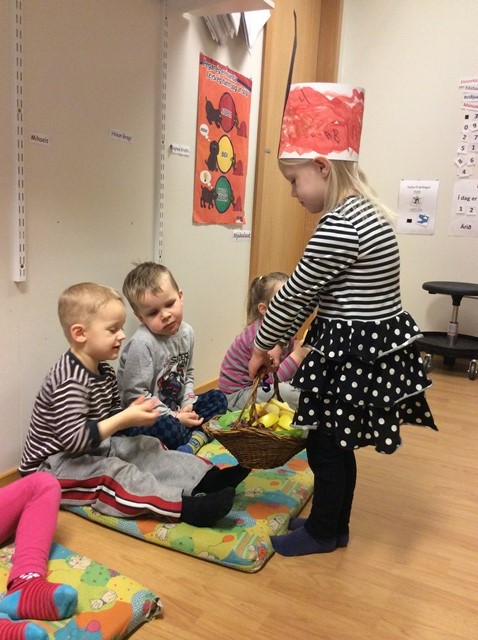 hún blés á afmæliskertin 4 síðan bauð hún börnunum upp á ávexti.
