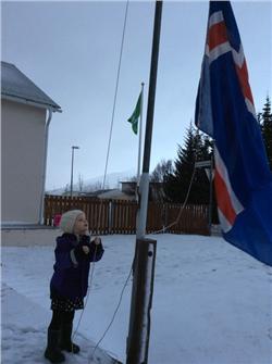 Að lokum flaggaði hann íslenska fánanum í tilefni dagsins.