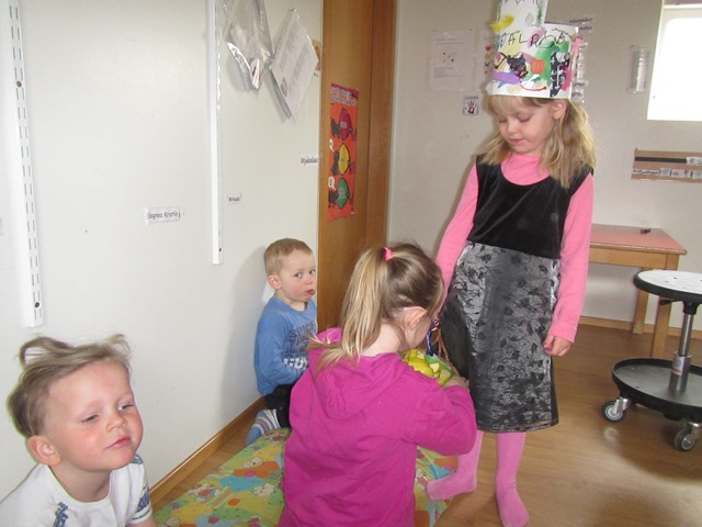 og bauð svo öllum í Mánakoti upp á ávexti úr afmæliskörfunni.