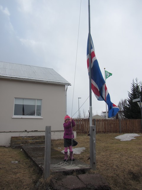 Einnig fór hún út og flaggaði íslenska fánanum í tilefni dagsins.