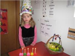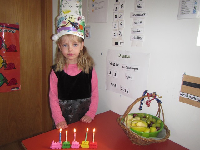 María Aðalrós bjó sér til þessa fallegu kórónu, blés á kertin 5