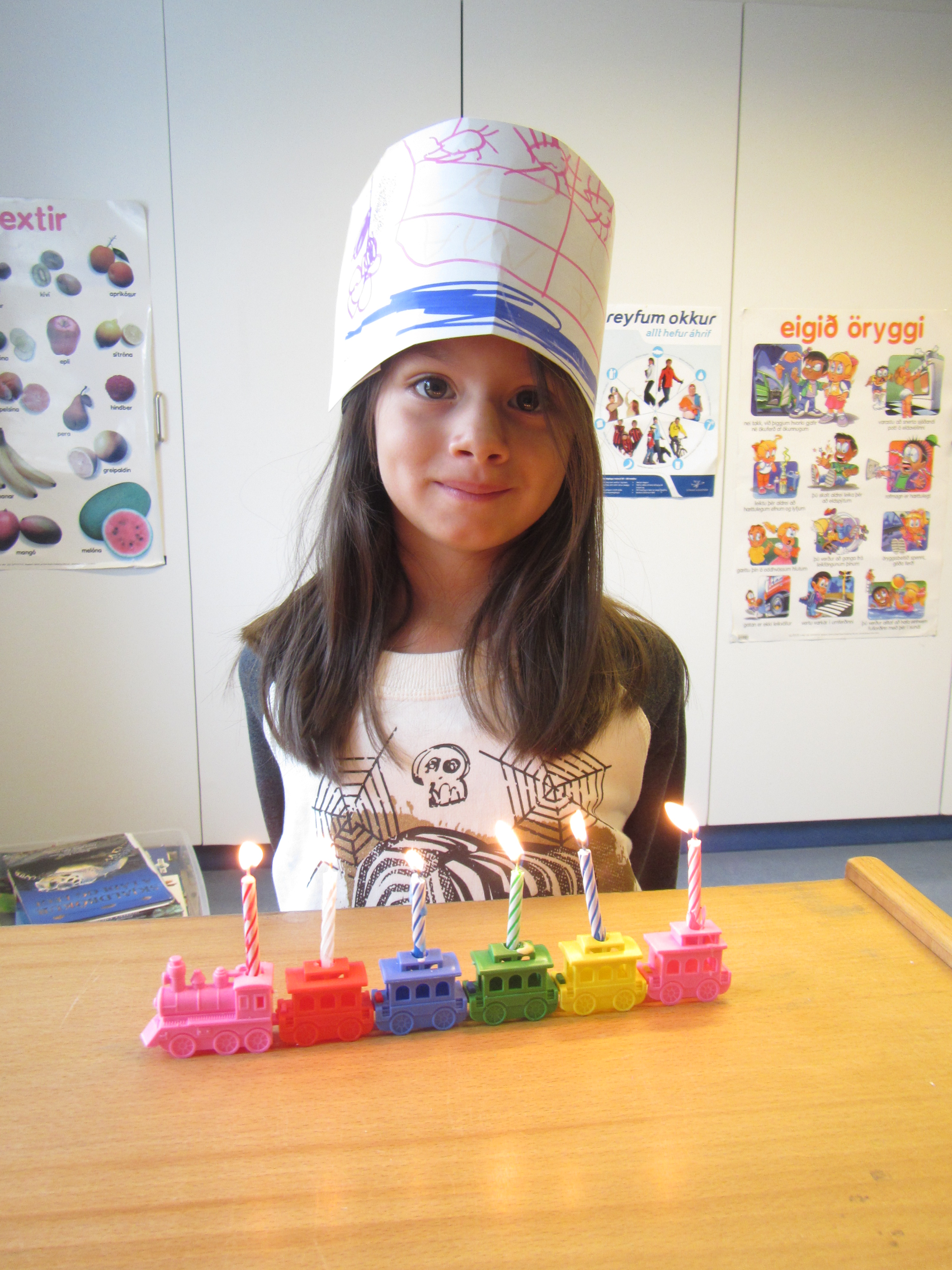 Maya Alexandra bjó sér til fallega kórónu, blés á kertin 6 og