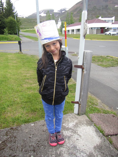 Að veislu lokinni fór hún út og flaggaði fánanum í tilefni dagsins.