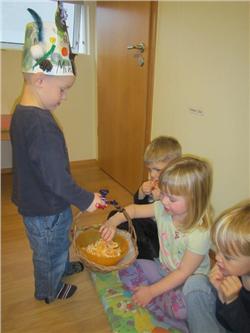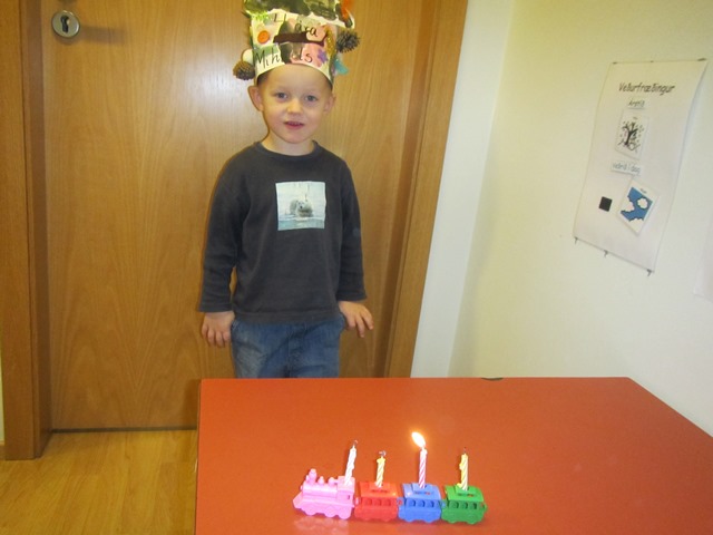 Í ávaxtastundinni sungum við fyrir hann afmælissönginn og