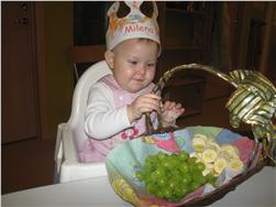Í ávaxtastundinni sungum við fyrir hana afmælissönginn, hún hefur stækkað í nótt og þetta er afmæliskveðja.