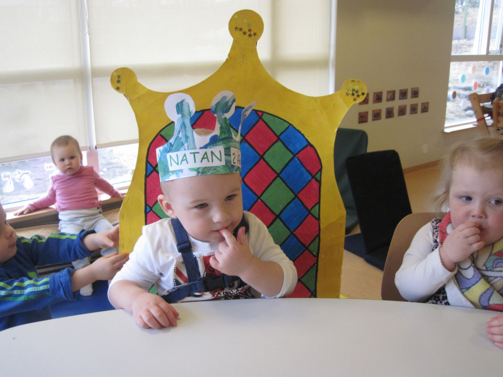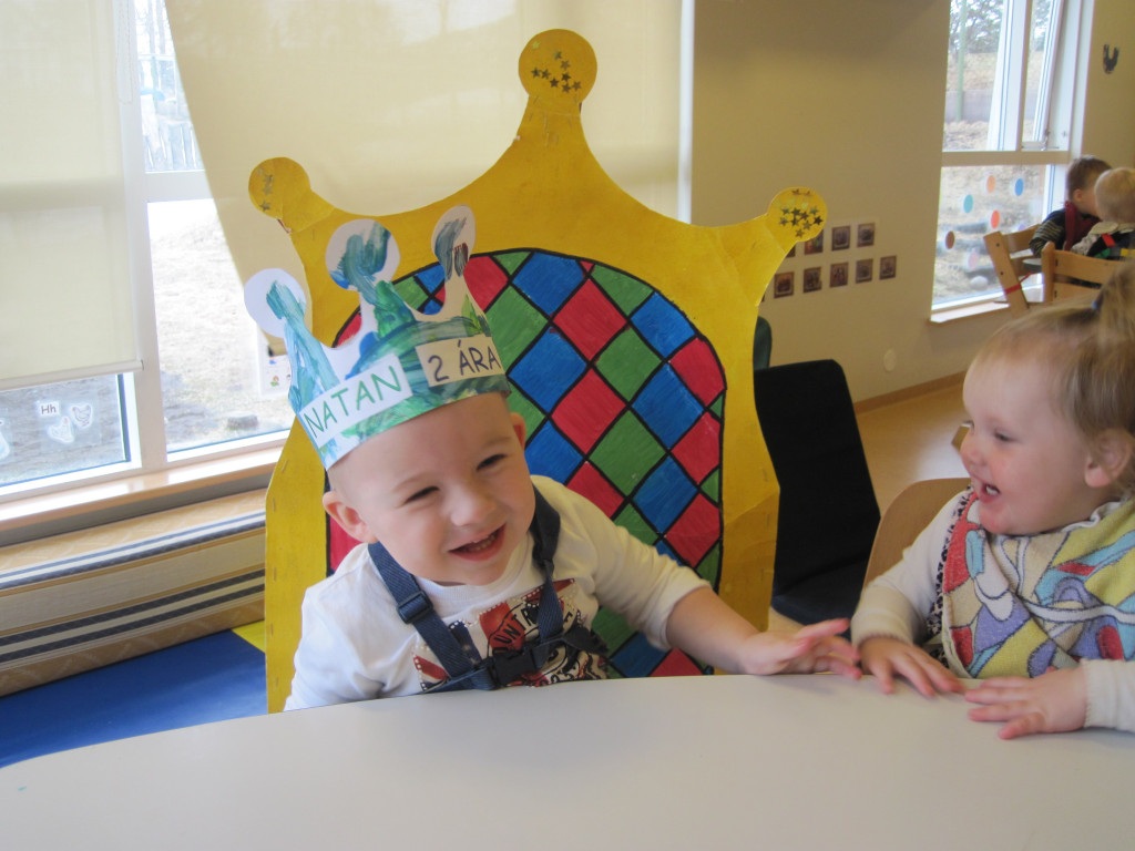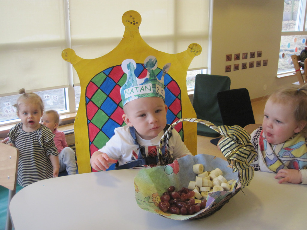 Á þriðjudaginn héldum við upp á 2 ára afmælið hans Natans. Hann bjó til fallega kórónu og í ávaxtastundinni sungum við fyrir hann afmælissönginn, hann hefur stækkað í nótt og þetta er afmæliskveðja. Eftir sönginn fengu svo allir sér ávexti úr ávaxtakörfunni.