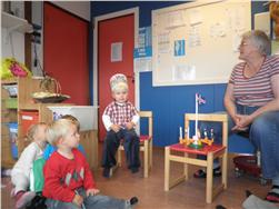 við sungum fyrir hann afmælissönginn og hann blés á kerti. Í ávaxtastund bauð hann öllum á Skakkalandi upp á ávexti.