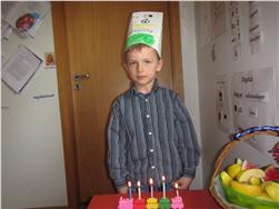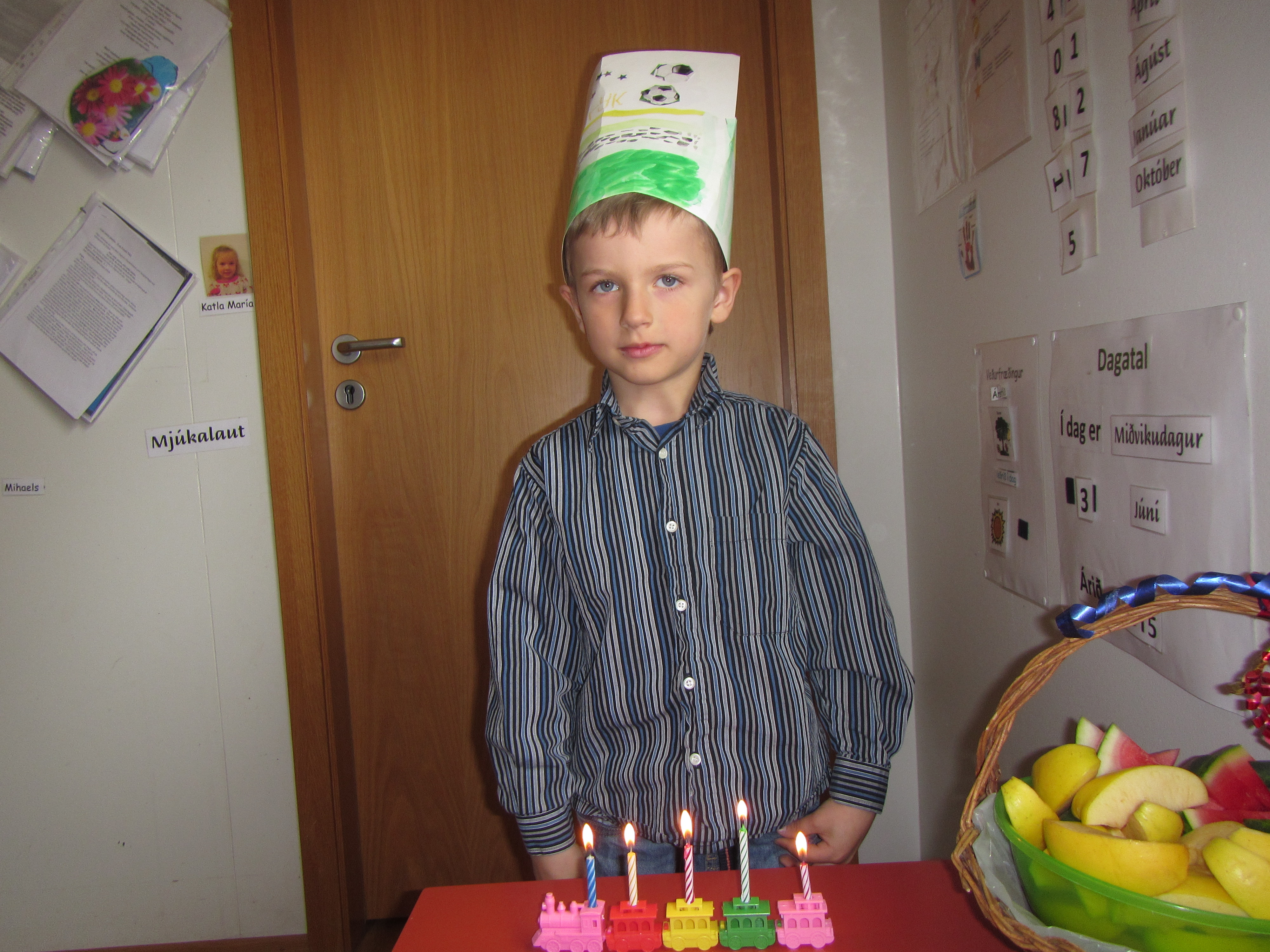 Patryk bjó sér til þessa fallegu kórónu, blés á kertin 5