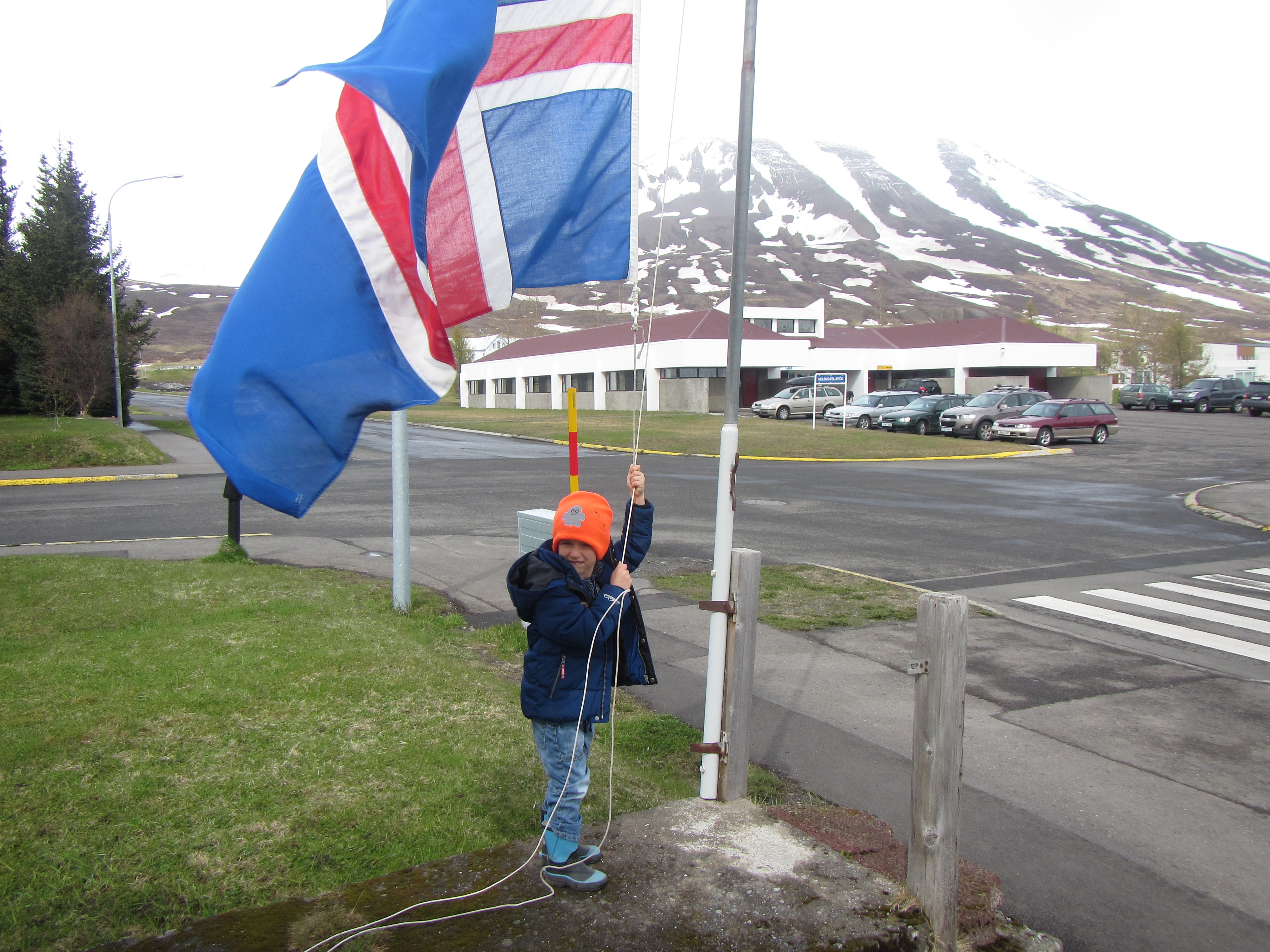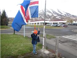 Einnig fór hann út og flaggaði íslenska fánanum í tilefni dagsins.