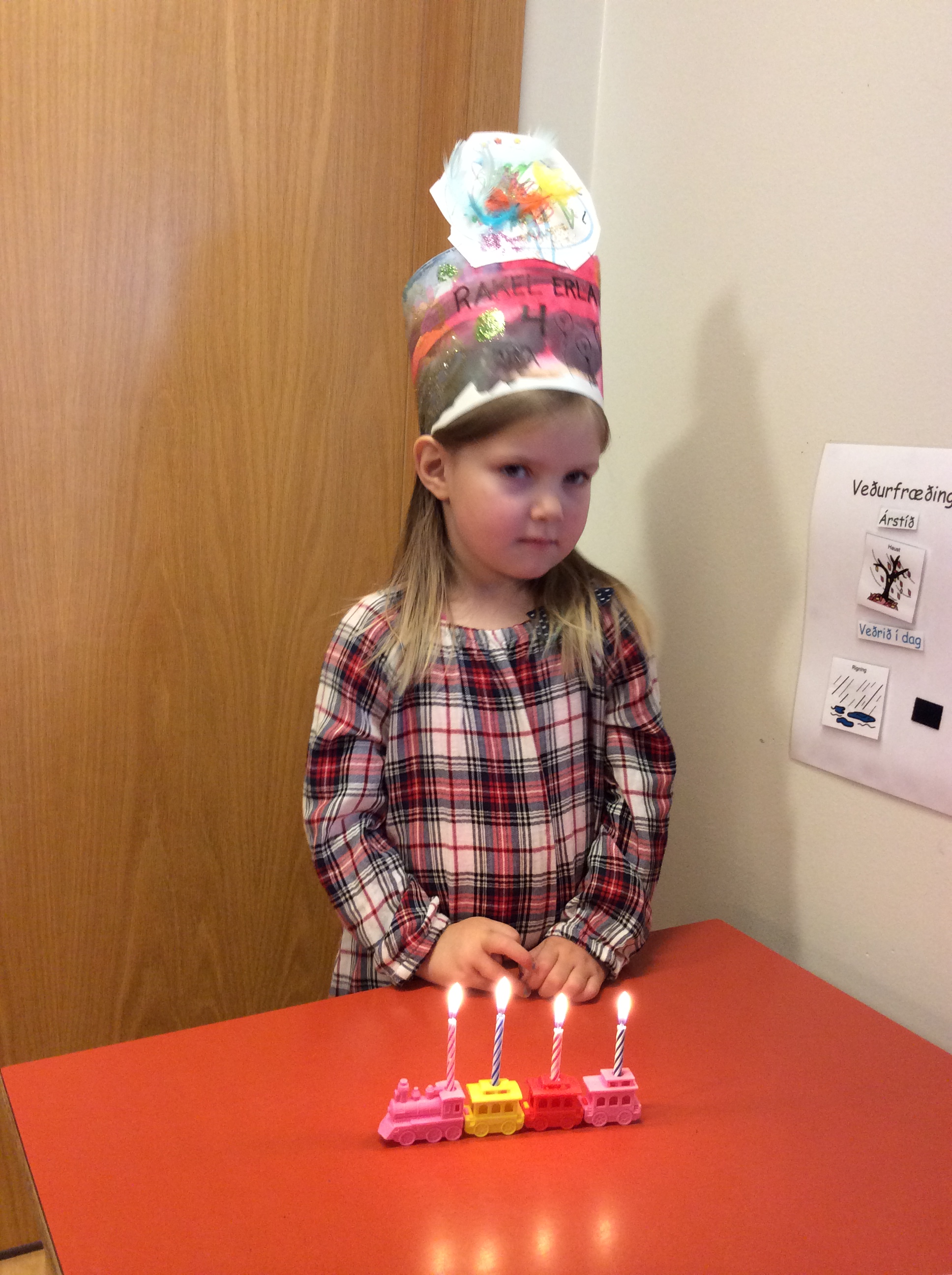 Í ávaxtastundinni sungum við fyrir hana afmælissönginn og eftir