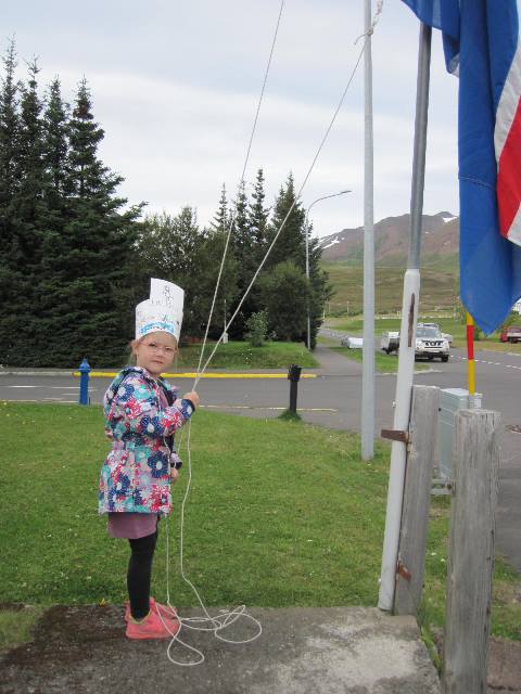 Að því loknu fór hún út og flaggaði fánanum í tilefni dagsins.