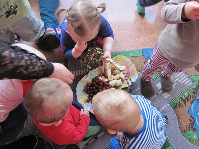 Í ávaxtastundinni sungum við fyrir hana afmælissönginn og eftir