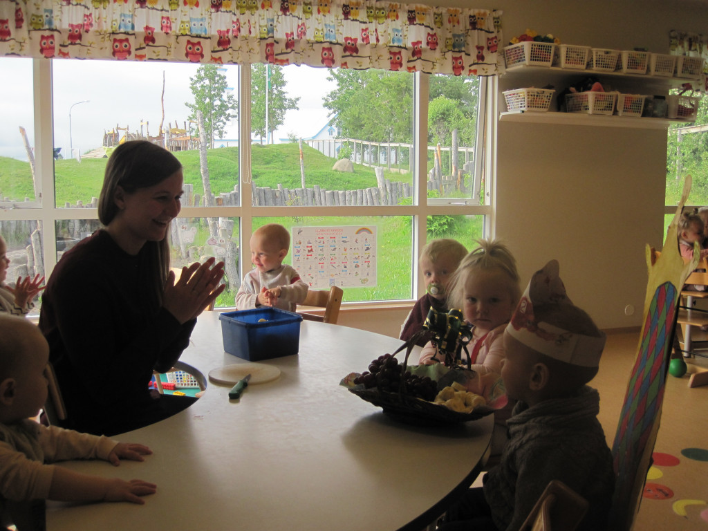 Í dag héldum við upp á 2 ára afmælið hans Rúnars Áka. Rúnar Áki gerði kórónu (sem mátti bara vera rauð) og bauð upp á ávexti úr ávaxtakörfunni. Við óskum Rúnari Áka og fjölskyldu hans innilega til hamingju með daginn.