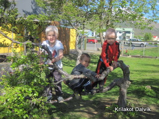 Nú nýtum við veðurblíðuna til útiveru og leiðist börnunum það ekki. Kalli kanína hefur verið hjá okkur undanfarnar vikur og glatt lítil hjörtu en nú er hann farinn til síns heima.