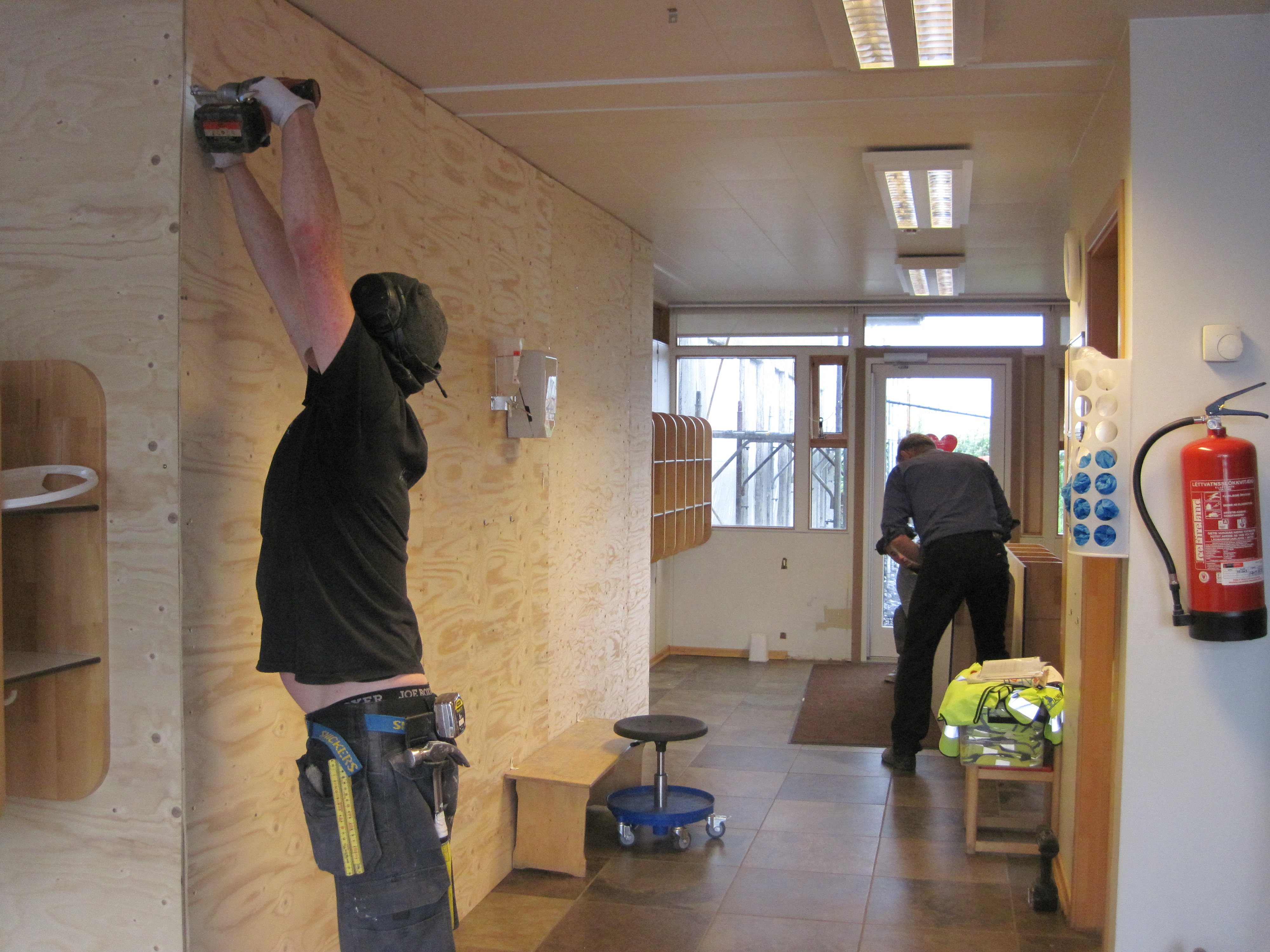 Það má segja að hlutirnir hafi gerst hratt  í dag því Krílakot lokaði klukkan 16:15 þegar börn og starfsfólk fór í sumarfrí og á sömu mínútu komu fyrstu iðnaðarmennirnir og hófust handa við breytingar á húsnæðinu.