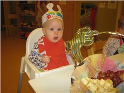 Í ávaxtastundinni sungum við fyrir hana afmælissönginn, hún hefur stækkað í nótt og þetta er afmæliskveðja.