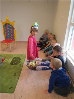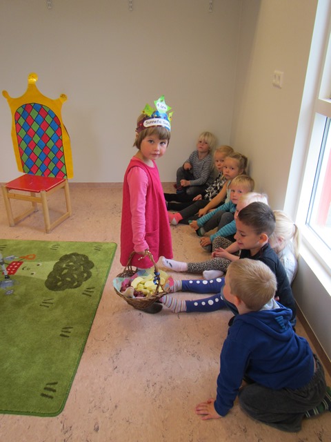 og að lokum bauð hún öllum á Kátakoti upp á ávexti úr afmæliskörfunni.