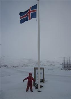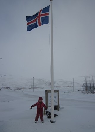 Einnig fór hún út og flaggaði íslenska fánanum í tilefni dagsins.