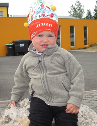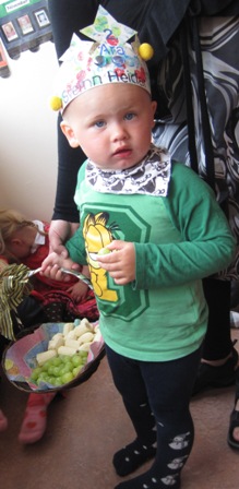Í ávaxtastundinni sungum við fyrir hann afmælissönginn og hann blés á kertin tvö.