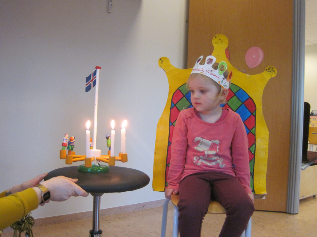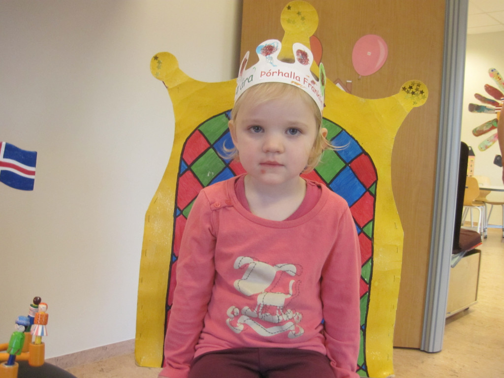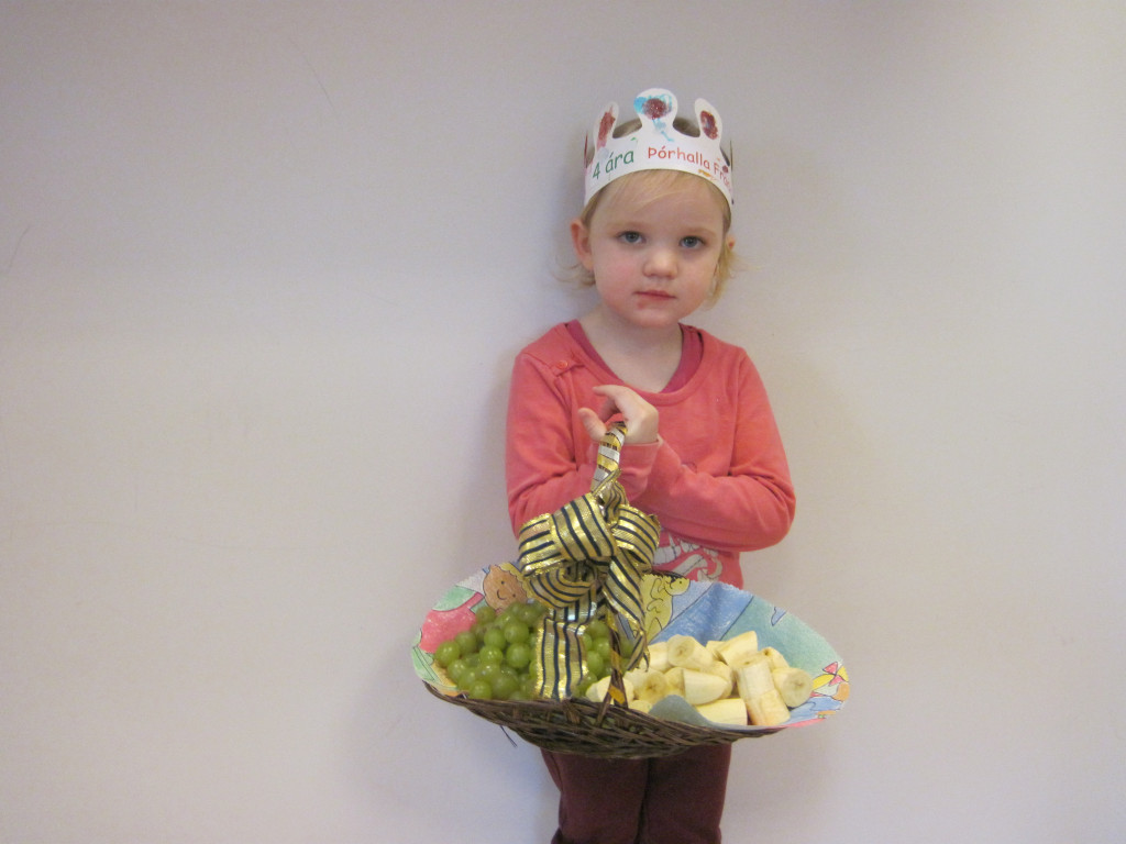 Þórhalla Franklín bjó sér til fallega kórónu og í ávaxtastundinni bauð hún upp á ávexti úr ávaxtakörfunni og við sungum fyrir hana afmælissönginn.