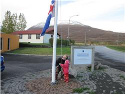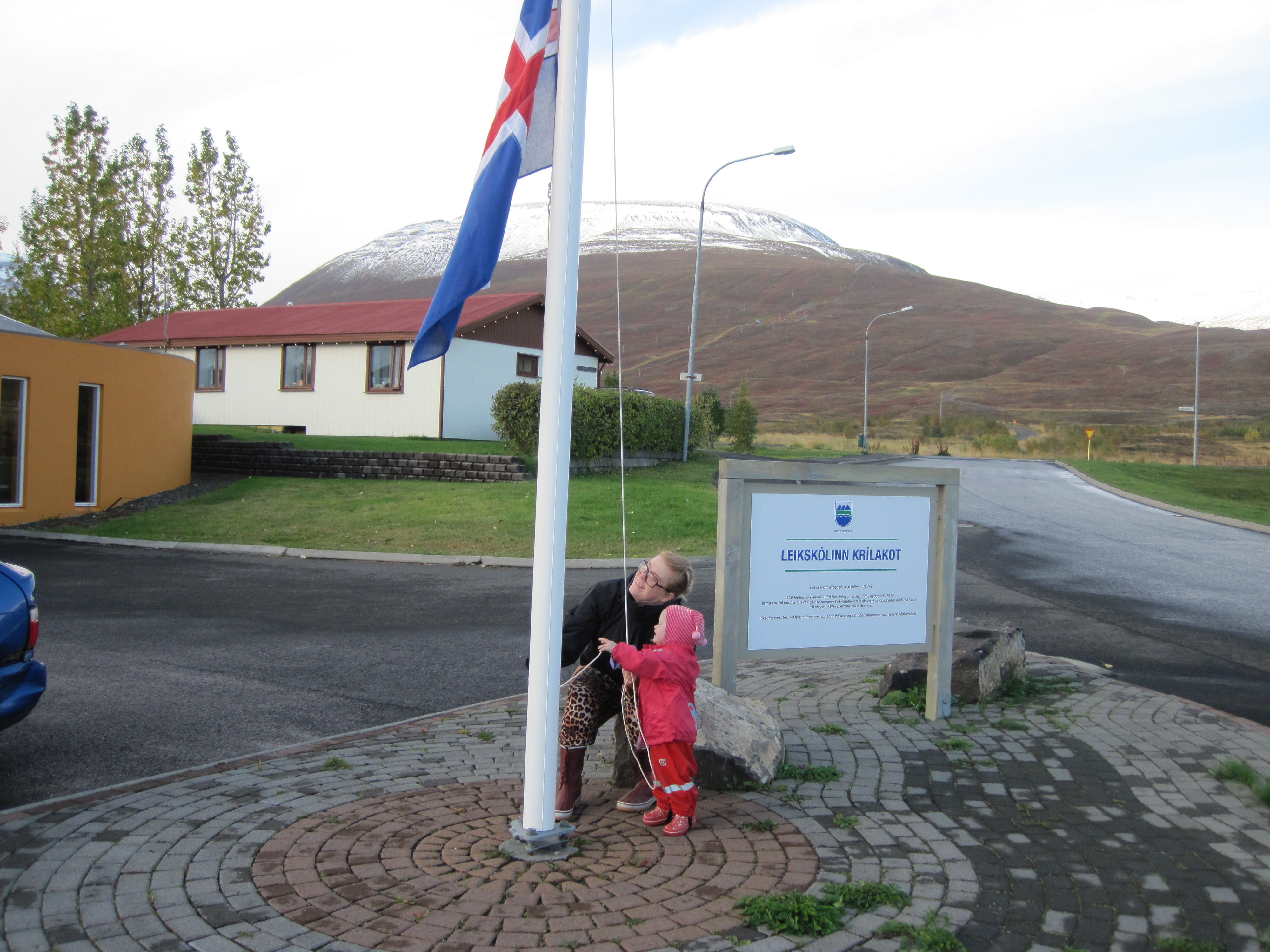 Þórlaug Diljá málaði á kórónuna sína og við flögguðum íslenska fánanum henni til heiðurs.