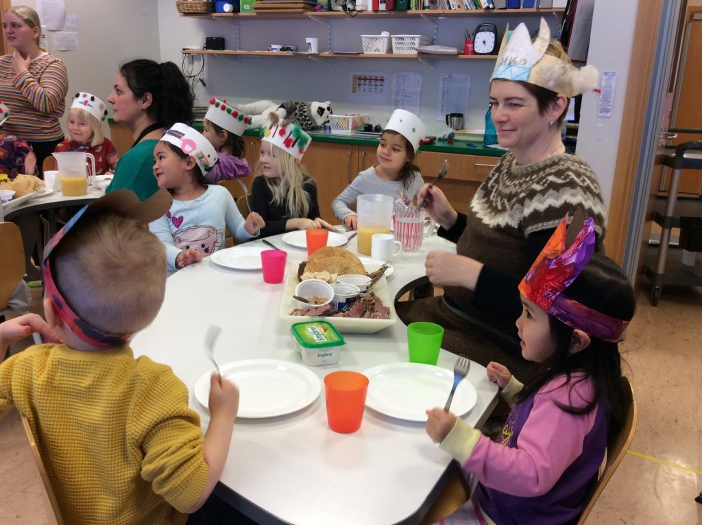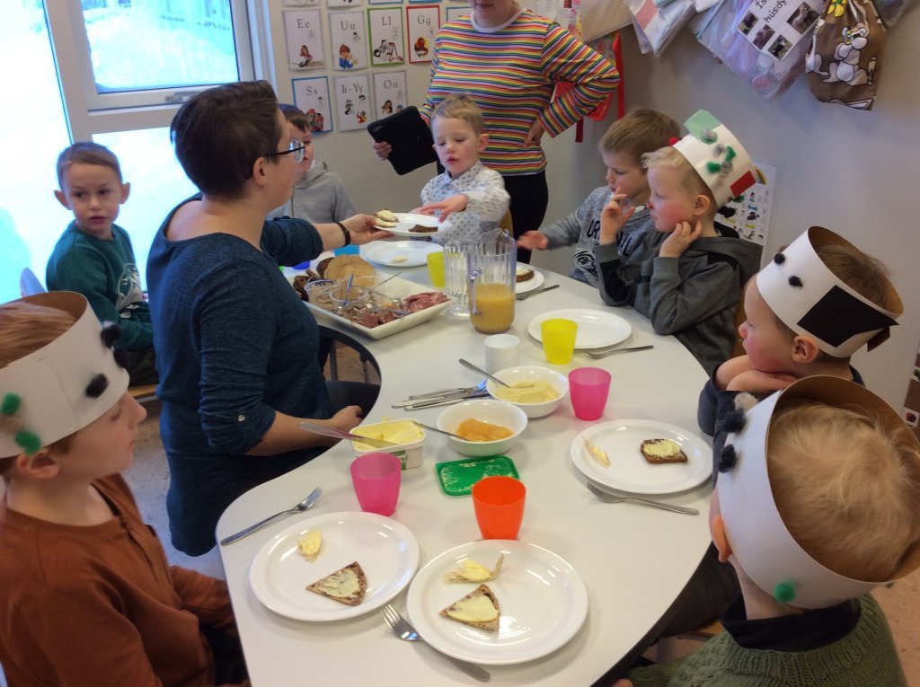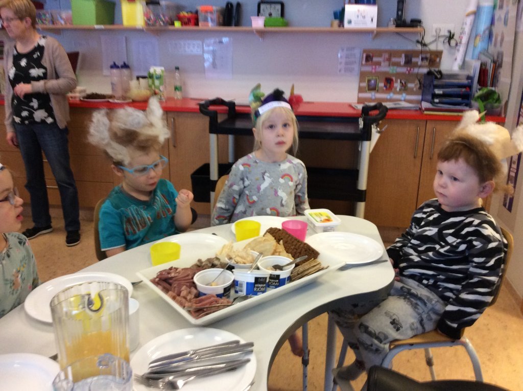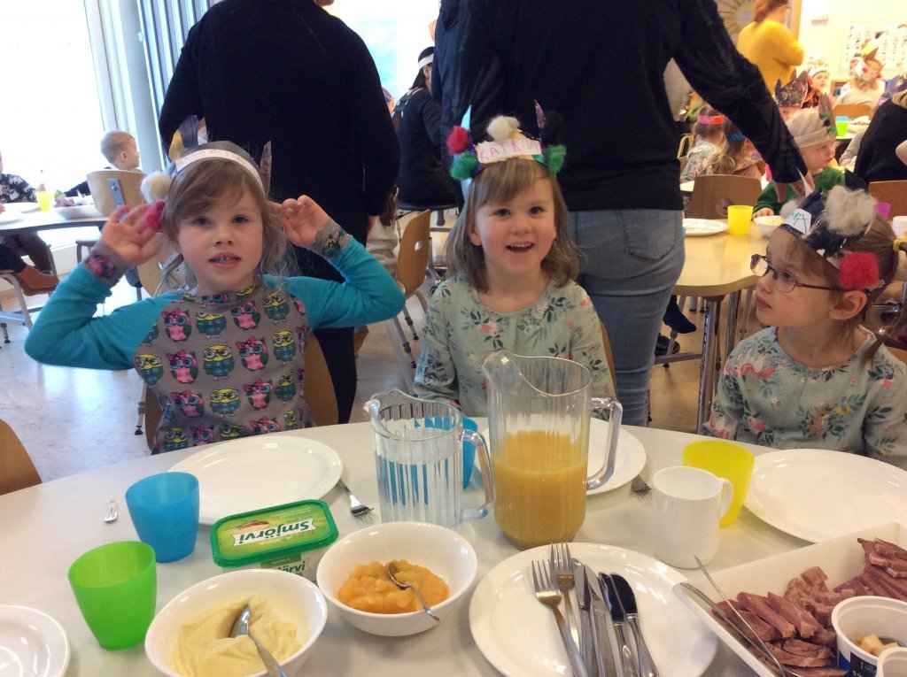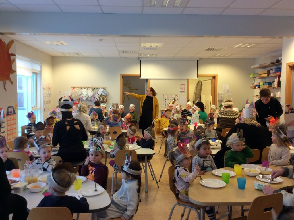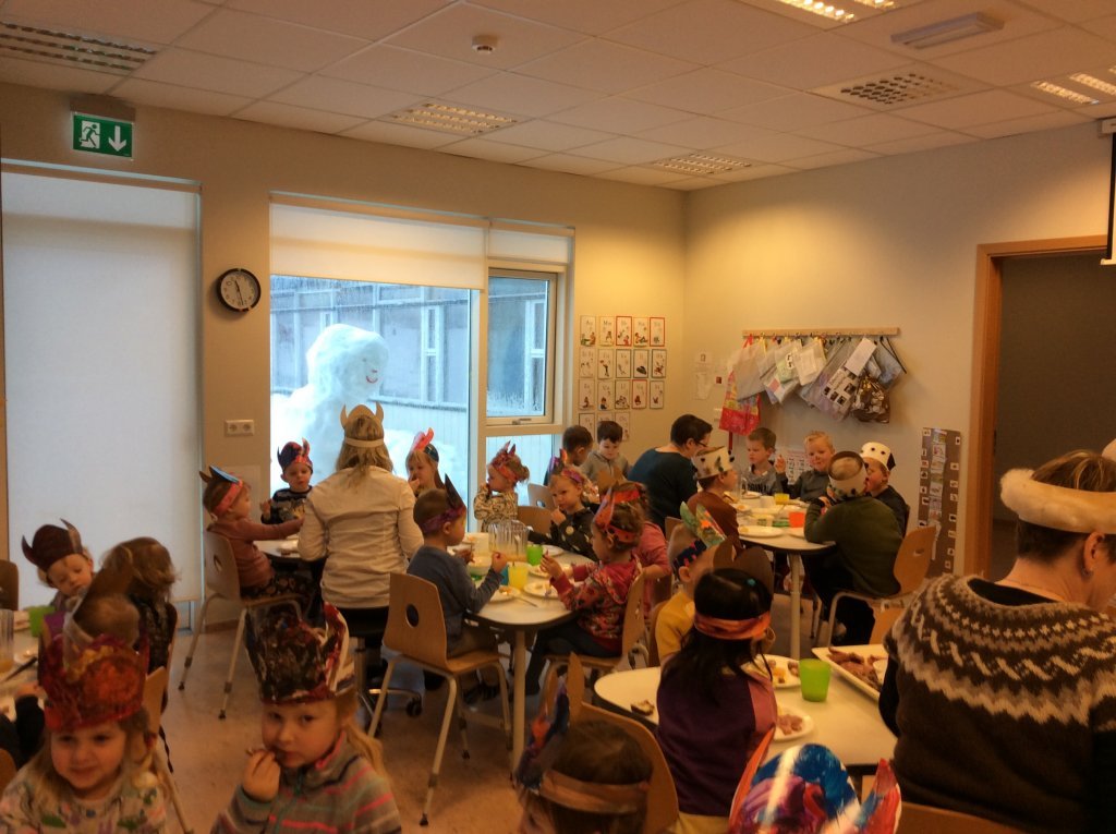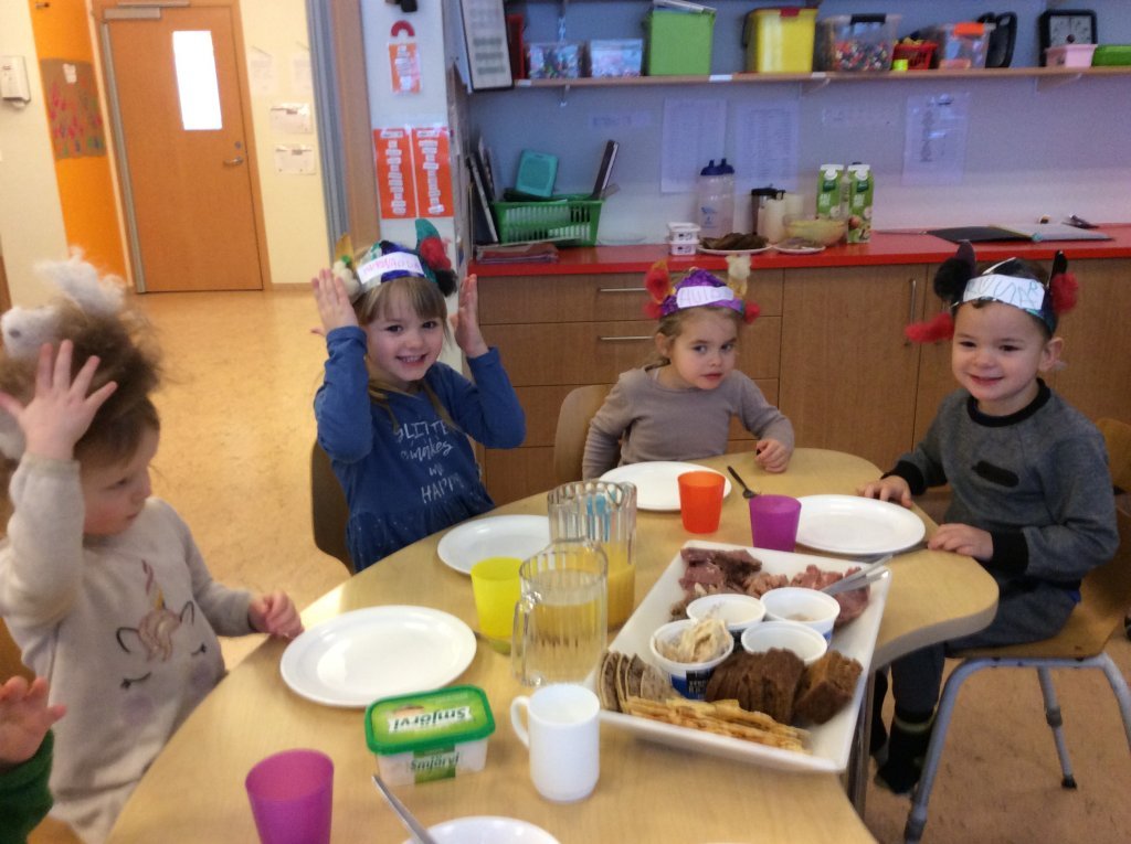 Föstudaginn 31. janúar vorum við með þorrablót hér í leikskólanum Krílakoti. Elstu fjórar deildirnar borðuð saman og sungu hin ýmsu þorralög. Mjög skemmtilegur dagur í alla staði og börnin virtust hafa gaman af að fá að syngja t.d. undir borði upp á stól og fleira.