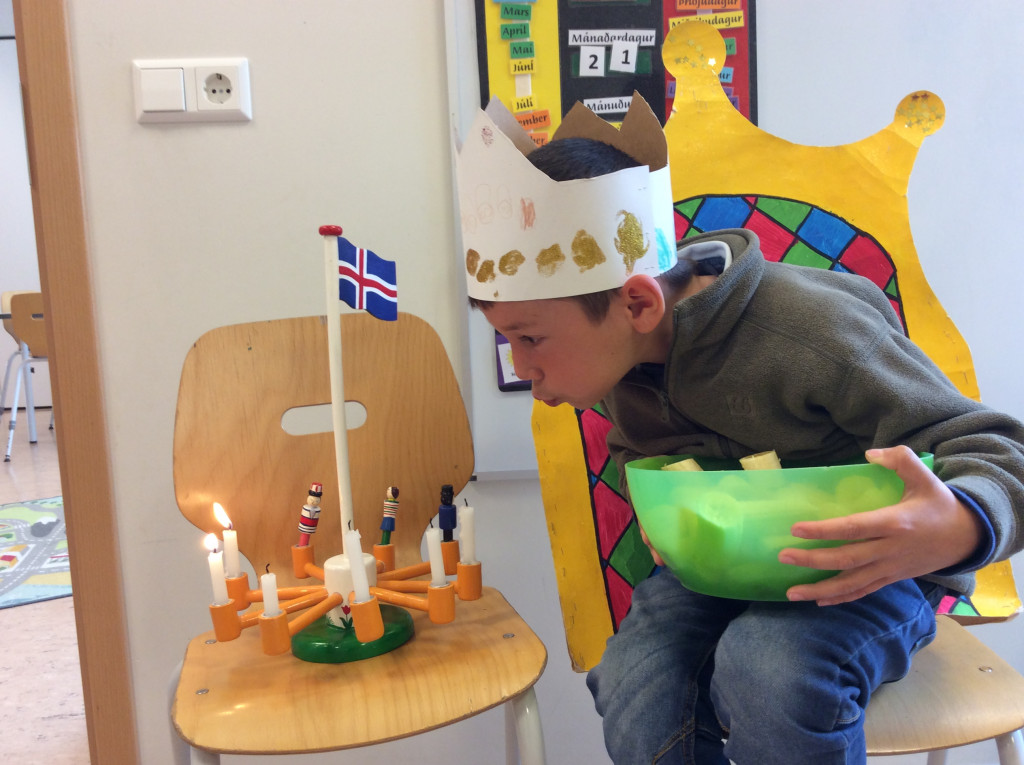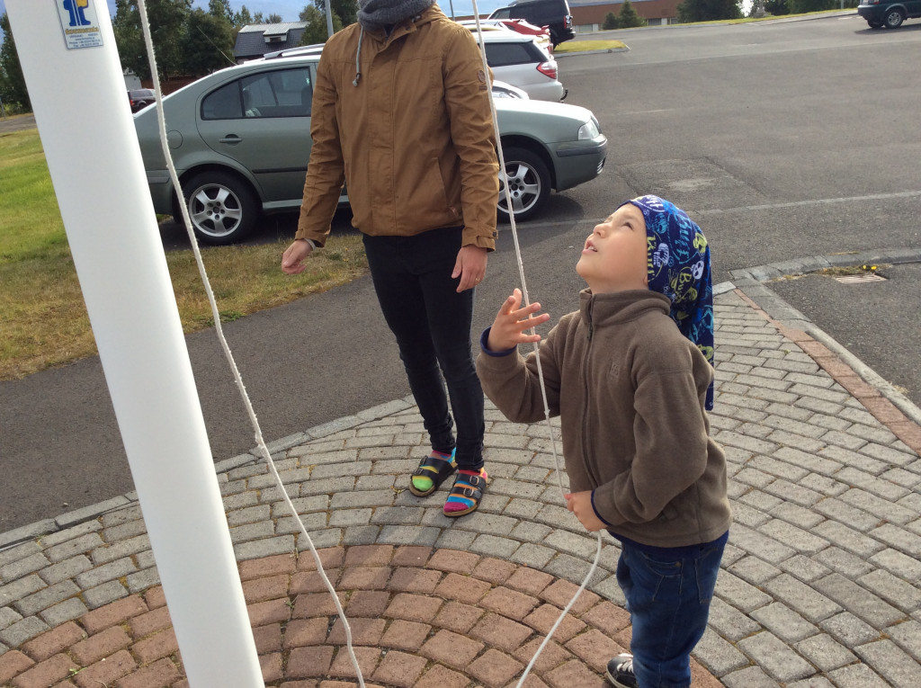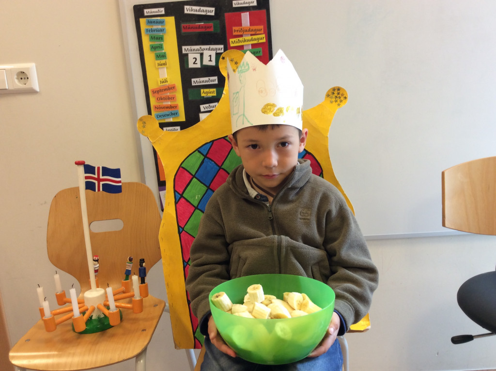 Þann 17. ágúst varð Timur 6 ára. Við heldum upp á afmælið hans mánudaginn 21. ágúst. Hann bjó til glæsilega kórónu, við sungum fyrir hann afmælissönginn, hann blés á kertin 6 og bauð upp á ávexti. Hann flaggaði svo íslenska fánanum í tilefni dagsins. Við óskum Timur og fjölskyldu hans innilega til hamingju.