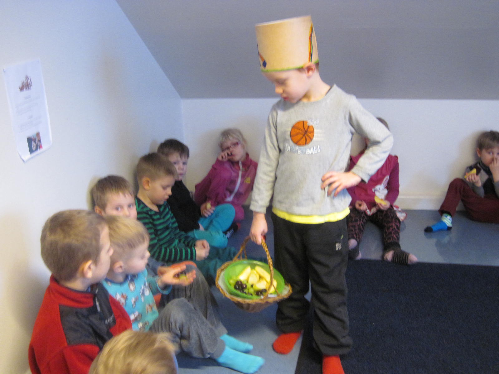 og bauð svo öllum í Sólkoti upp á ávexti úr afmæliskörfunni.