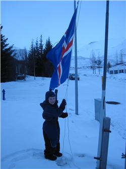 Einnig fór hann út og flaggaði íslenska fánanum í tilefni dagsins.