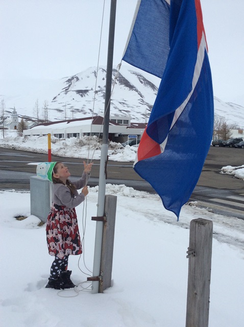 Einnig fór hún út og flaggaði íslenska fánanum í tilefni dagsins.