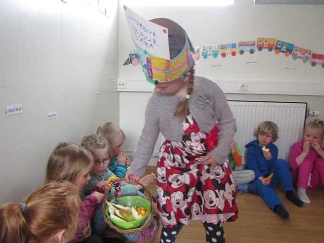 og bauð svo öllum í Mánakoti upp á ávexti úr afmæliskörfunni.
