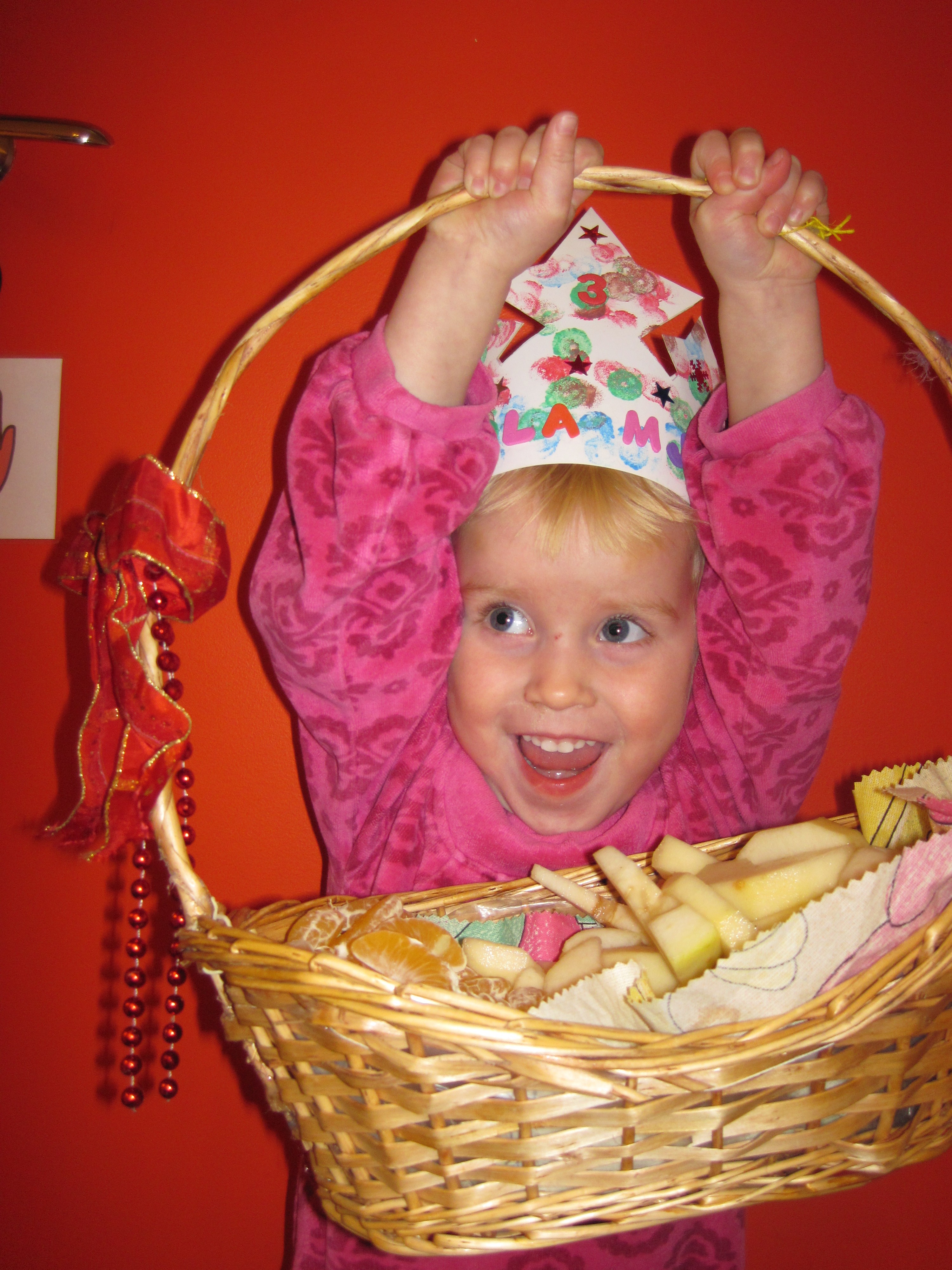 Eftir sönginn bauð Víóla Mjöll öllum á Hólakoti uppá ávexti úr ávaxtakörfunni.