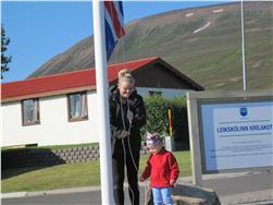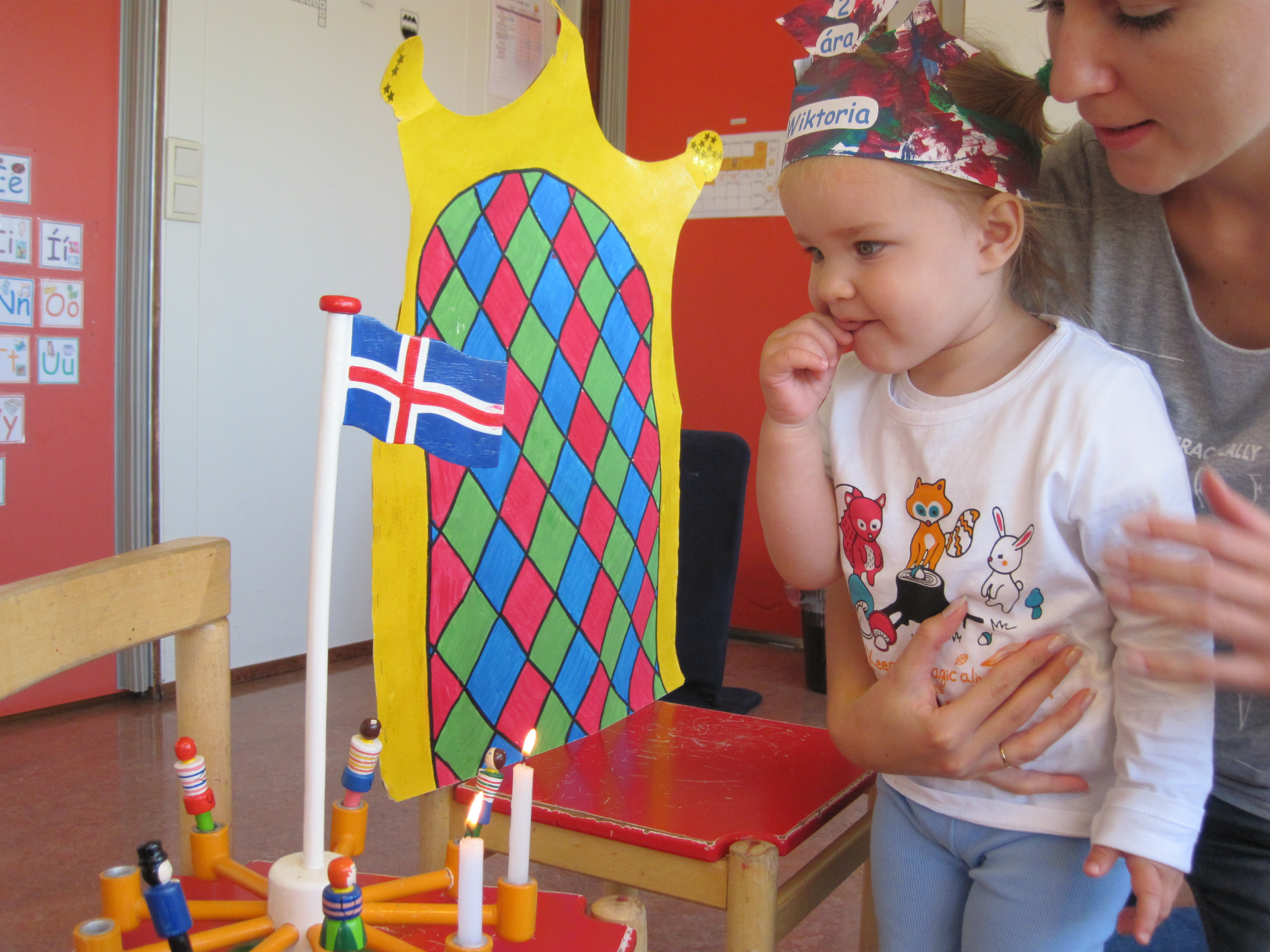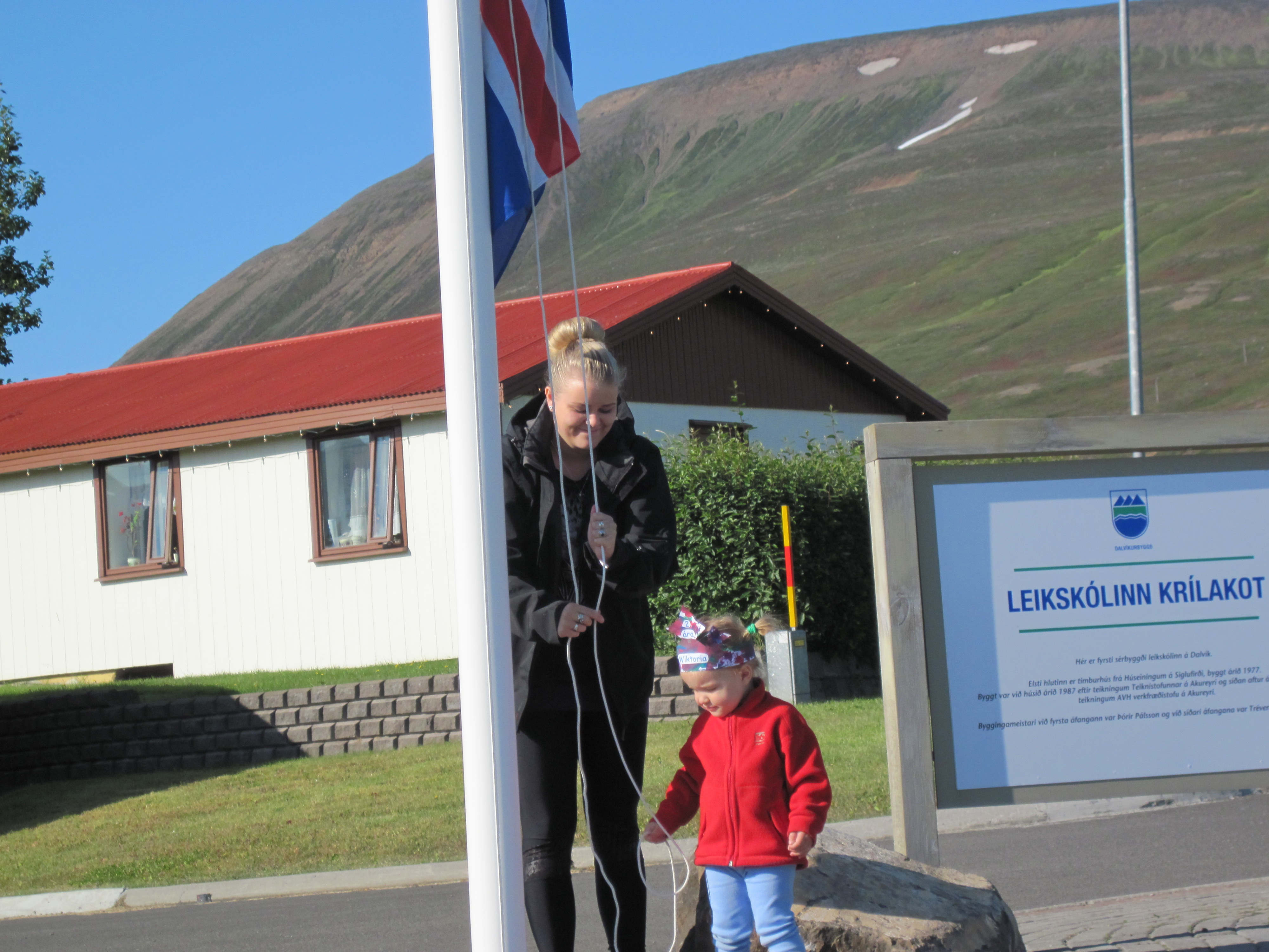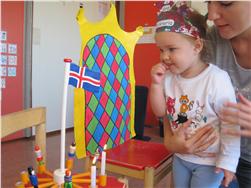 Wiktoria málaði á kórónuna sína og við flögguðum íslenska fánanum henni til heiðurs.