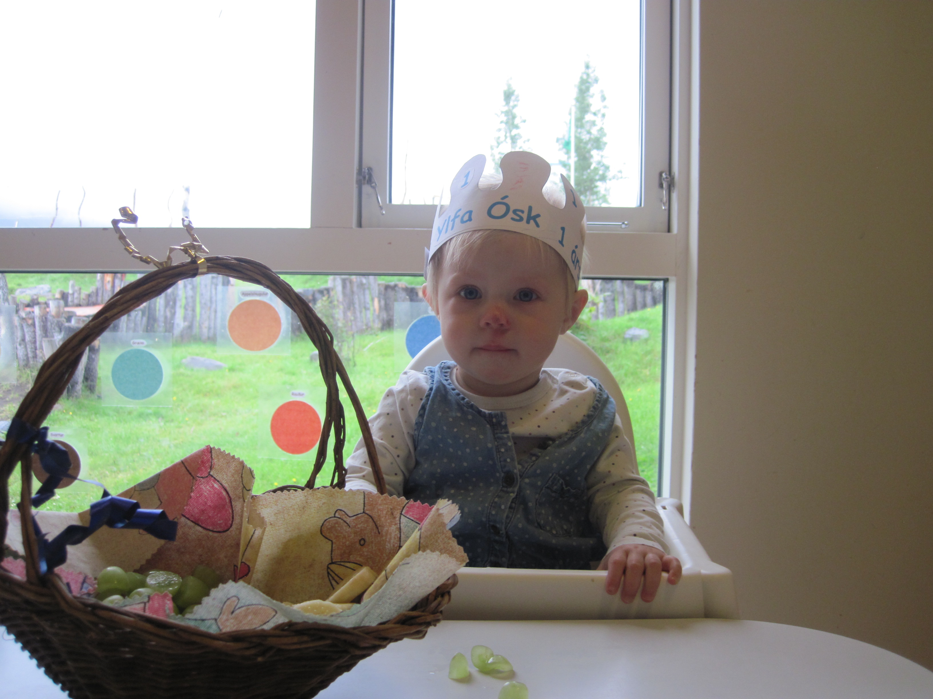 Ylfa Ósk bjó til fallega kórónu. Í ávaxtastundinni sungum við fyrir hana afmælissönginn,