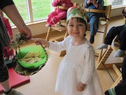 Í ávaxtastund sungum við fyrir Alexíu afmælissönginn og hún svo öllum börnunum á deildinni upp á ávexti.