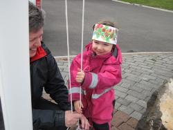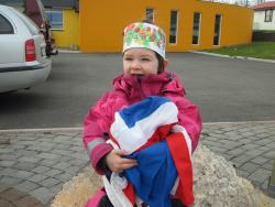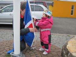 Alexía bjó sér til kórónu og fór út og flaggaði íslenska fánanum.