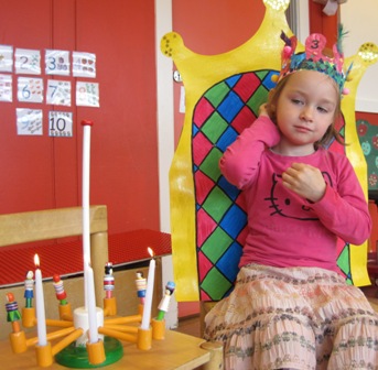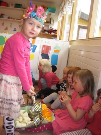 Eftir sönginn bauð Alexia öllum á Hólakoti upp á ávexti úr ávaxtakörfunni.