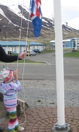 Alexia málaði sér kórónu og flaggaði íslenska fánanum.
