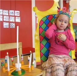 Í ávaxtastundinni sungum við fyrir hana afmælissönginn og hún blés á kertin þrjú.