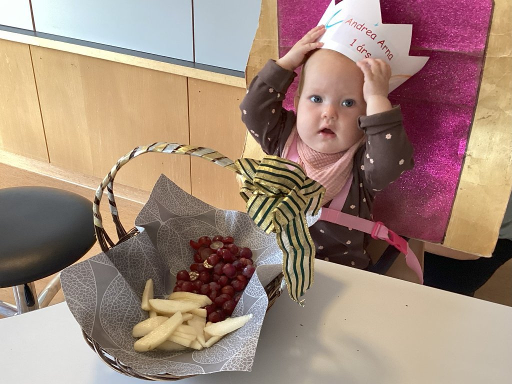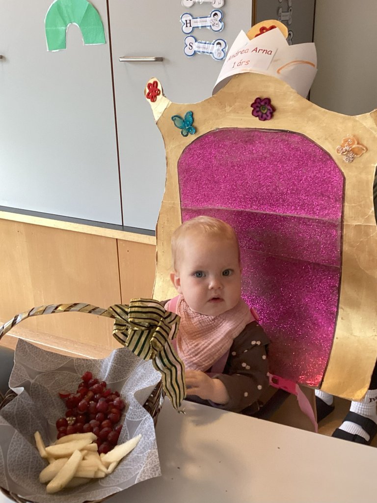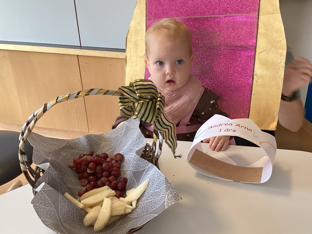 Andrea Arna er 1 árs í dag 17. september. Andrea bjó sér til kórónu í tilefni dagsins og við sungum fyrir hana afmælissönginn og í boði voru ávextir úr ávaxtakörfunni góðu. Við óskum Andreu Örnu og fjölskyldu hennar innilega til hamingju með daginn!