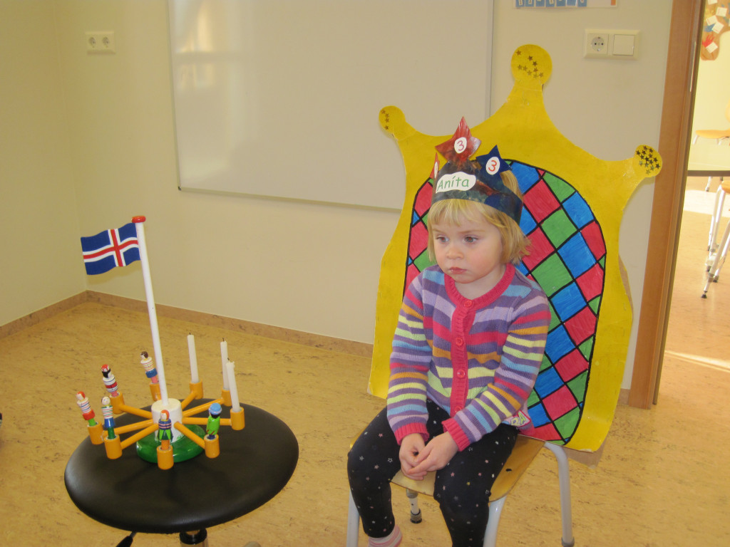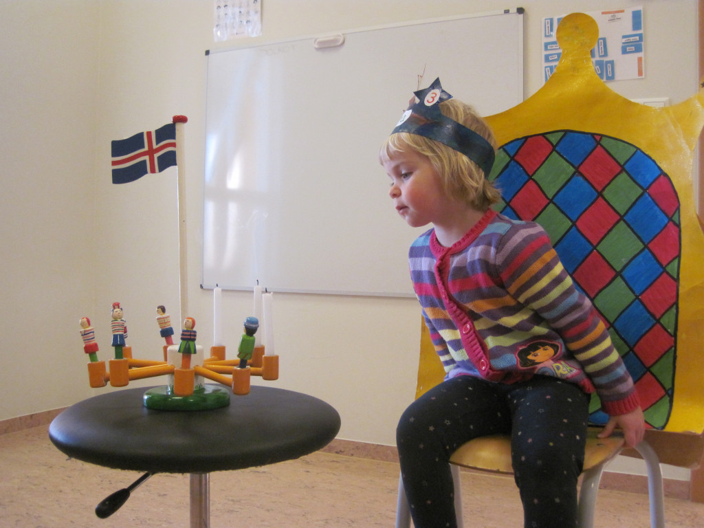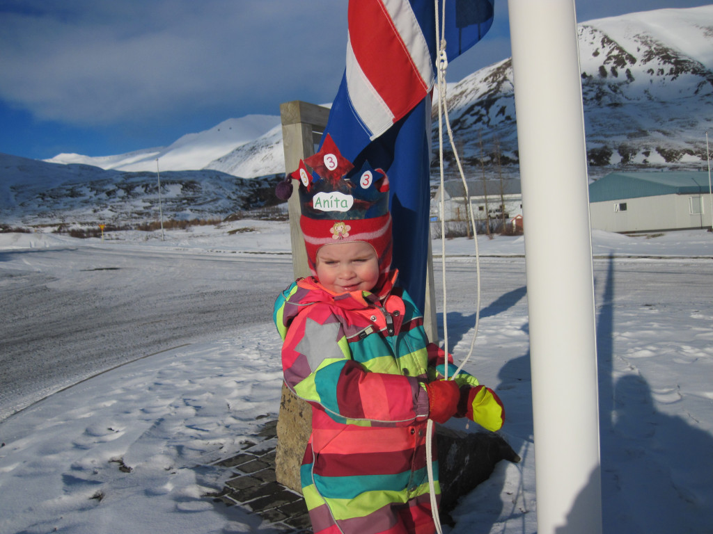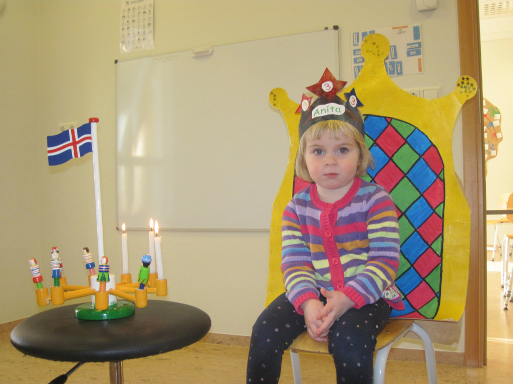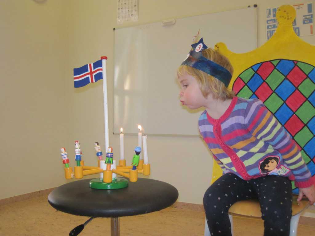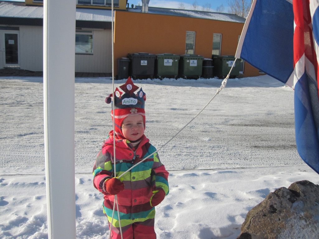 Aníta bjó sér til fallega kórónu og flaggði íslenska fánanum í tilefni dagsins. Í ávaxtastundinni bauð hún upp á ávexti úr ávaxtakörfunni og við sungum fyrir hana afmælissönginn, hún hefur stækkað í nótt og þetta er afmæliskveðja.