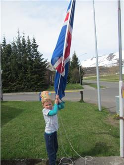 Að því loknu fór hann út og flaggaði fánanum í tilefni dagsins.