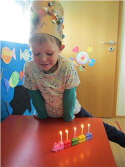 Arnór Atli bjó sér til fallega kórónu, blés á kertin 5 og